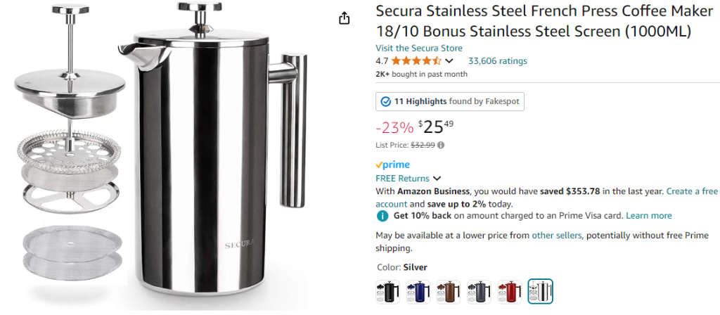 TIP: The green “A” is a Fakespot Rating which scores the quality of the reviews. It’s a very handy browser extension to make sure the 5-Star reviews you see are legit.