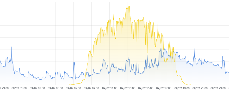 NOTE: Solar power varies a lot on cloudy days. If you’re running straight solar, there’s no battery to buffer the load. Don’t be greedy on cloudy day and try to run everything because power output might drop below what your devices need. The system will just stop putting out power and the devices will shut off…but that might be hard on some equipment.